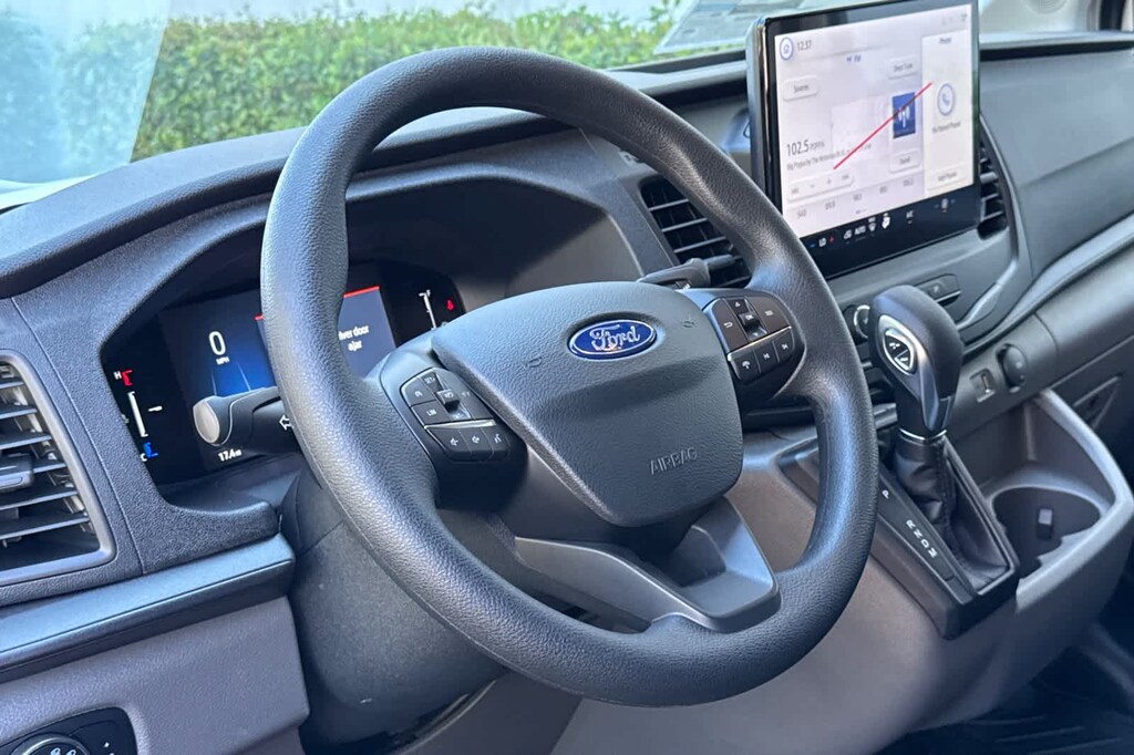 Navigation, Back-Up Camera, Flex Fuel, iPod/MP3 Input, Onboard Communications System Ford Transit Cargo Van with Oxford White exterior and Dark Palazzo Gray interior features a V6 Cylinder Engine with 275 HP at 6250 RPM*.